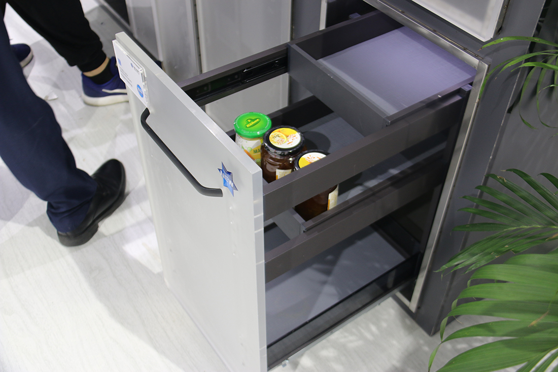 接下來就是星徽廚房功能五金系列。像全新鋁框拉籃系列——三邊抽中抽,分隔大小自由調(diào)節(jié),以及新款鋁框抽中抽調(diào)味籃,在分隔大小自由調(diào)節(jié)的基礎(chǔ)之上,產(chǎn)品升級為多層抽納設(shè)計,將有限的空間無限化,讓你的廚房像一個聚寶盆但又不失時尚感、科技感。