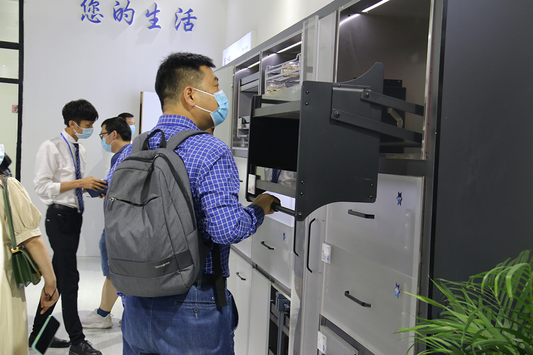 此次展會強(qiáng)勢吸睛的,當(dāng)屬星徽的上翻系統(tǒng),它具有雙緩沖功能,門板可打開到60°±15°以上角度任意懸停階段,且免工具快速拆卸,輕松開啟、輕柔閉合,高處物品輕松拿放,可謂是高度舒適的操作體驗(yàn)!